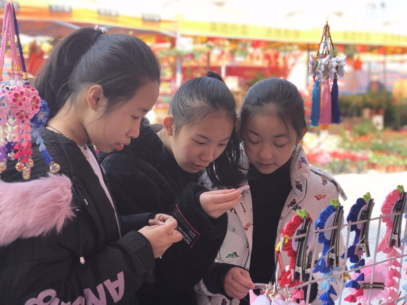 迎春花市上市民挑选饰品