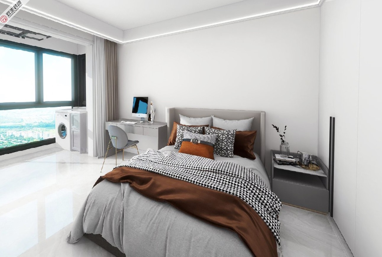 卧室简约利落的造型设计和大面积的留白,让整个空间显得格外通透静逸。灰色系床品辅以咖色,高级又耐看,营造出自然舒适的睡眠环境,无论是从实用性还是美观度都是恰到好处。